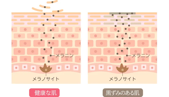 通常はターンオーバーとともに排出されますが、刺激が繰り返されると、色として肌に残ってしまうのです。