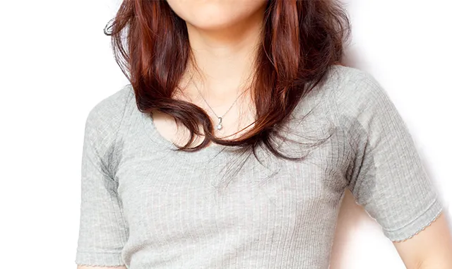 わき、手のひら、足の裏、顔など、体の一部だけに汗をかくタイプです。 原発性多汗症のほとんどがこのタイプで、日常生活の中でストレスや緊張を感じたときに汗が出やすくなります。 特に「わき汗」で悩む原発性腋窩多汗症は代表的な例で、思春期ごろから症状が始まることも珍しくありません。