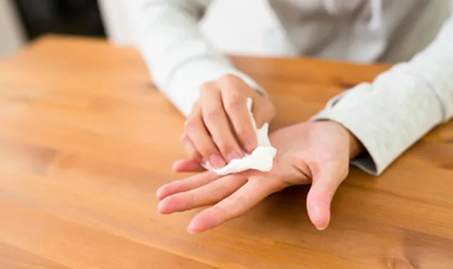 手のひらに異常な量の汗をかくタイプです。 「握手ができない」「書類やノートが濡れて字が書きづらい」「スマートフォンの画面が汗で反応しない」など、生活のさまざまな場面で支障を感じる方が多くいらっしゃいます。 通常でも緊張すると手に汗をかきますが、手掌多汗症では安静時でも常に湿っていたり、水滴が落ちるほど汗が出たりするのが特徴です。